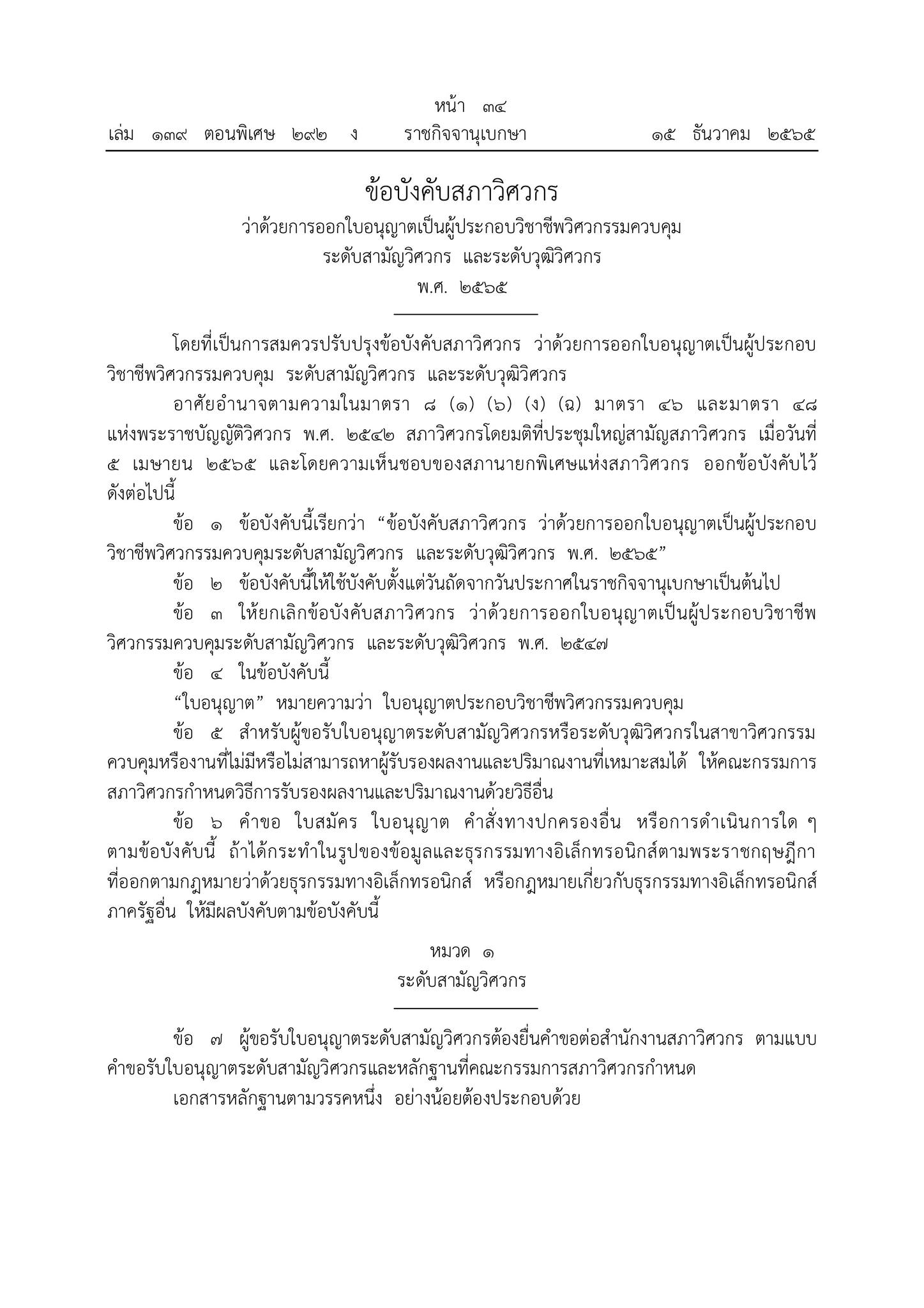 › ฟอรั่ม › ข่าวสารงานช่าง › ข้อบังคับสภาวิศวกร ว่าด้วยการออกใบอนุญาตเป็นผู้ประกอบวิชาชีพวิศวกรรมควบคุมระดับสามัญวิศวกร และระดับวุฒิวิศวกร พ.ศ. 2565 This topic is empty. Log In Register Lost Password กำลังดู 1 ข้อความ - 1 ผ่านทาง 1 (ของทั้งหมด 1) ผู้เขียน ข้อความ ธันวาคม 20, 2022 เวลา 4:21 am #821 adminKeymaster ข้อบังคับสภาวิศวกร ว่าด้วยการออกใบอนุญาตเป็นผู้ประกอบวิชาชีพวิศวกรรมควบคุมระดับสามัญวิศวกร และระดับวุฒิวิศวกร พ.ศ. 2565 (บังคับใช้ 16 ธันวาคม 2565) ดูและDownload ผู้เขียน ข้อความ Log In Register Lost Password กำลังดู 1 ข้อความ - 1 ผ่านทาง 1 (ของทั้งหมด 1) คุณต้องเข้าสู่ระบบเพื่อตอบกลับกระทู้นี้ เข้าสู่ระบบ ชื่อผู้ใช้: รหัสผ่าน: จำฉันไว้ในระบบ Continue with Google เข้าสู่ระบบ Log in / Register